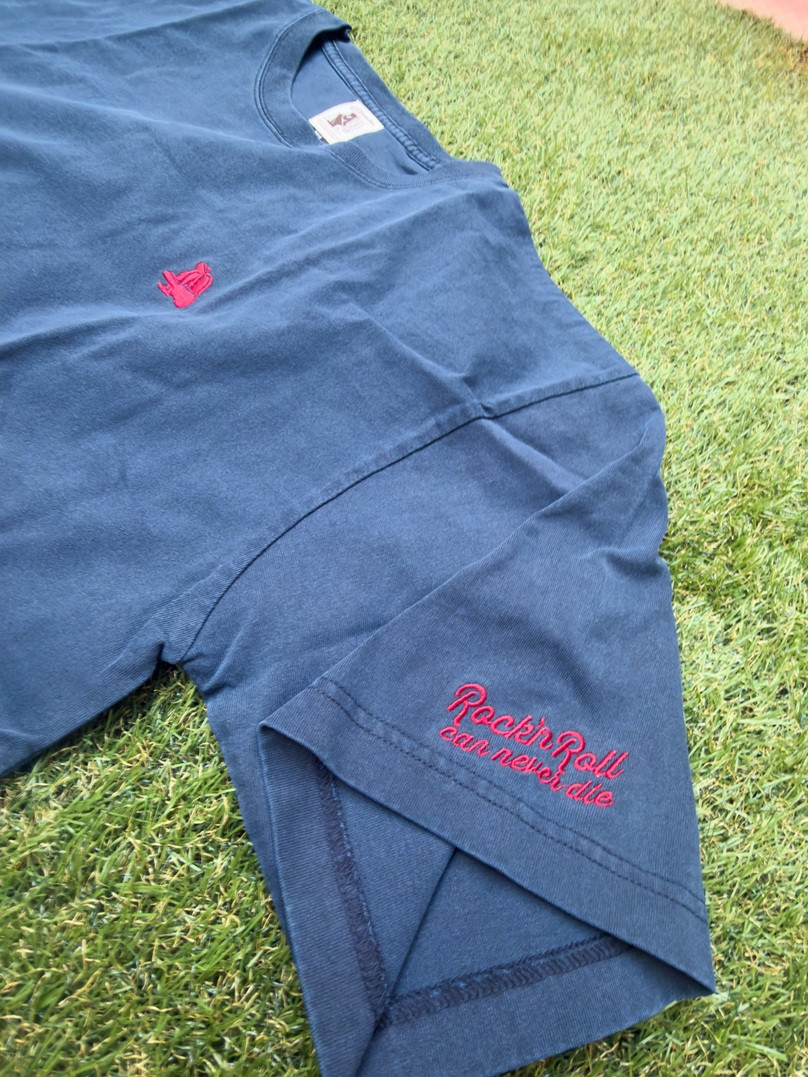 ※レジャーに最適な吸水速乾のピグメントTEE。流行のワイドシルエットでリラックスした着心地の1枚。ピグメント染めなので、色落ちによる経年変化も楽しめます。胸元には今回のオリジナル刺繍“コブロックベアー”袖にはRock’n Roll Can Never Dieの刺繍入り。M/Lサイズは女性でもゆったり着れるサイズ、L/XLサイズは男女問わずにガバっと着たい人向け。