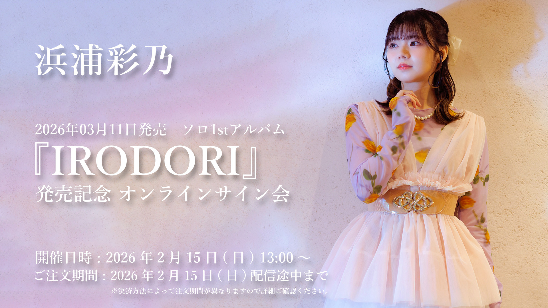 浜浦彩乃 ソロ1stアルバム『IRODORI』の発売を記念して、ビクターオンラインストアでオンラインサイン会が決定しました!