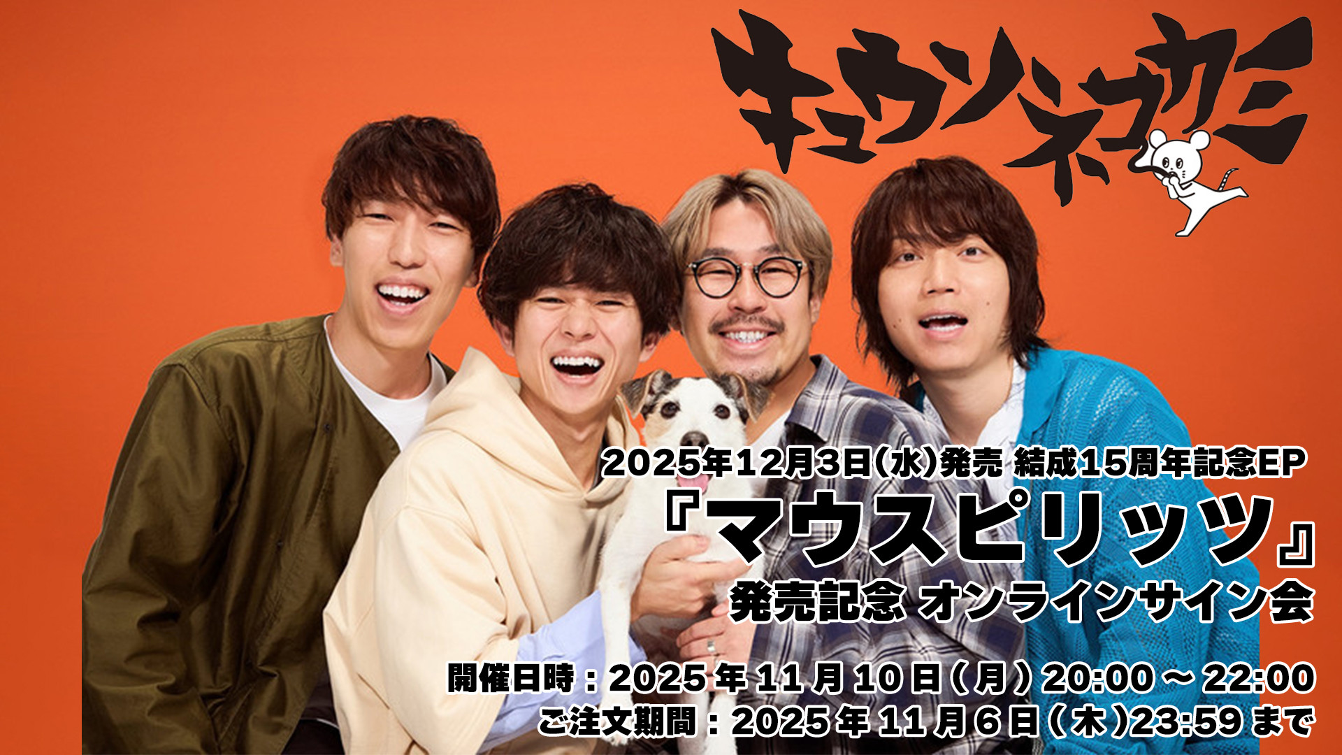 キュウソネコカミ 2025年12月3日(水)発売 結成15周年記念EP『マウスピリッツ』の発売を記念し、オンラインサイン会が決定!