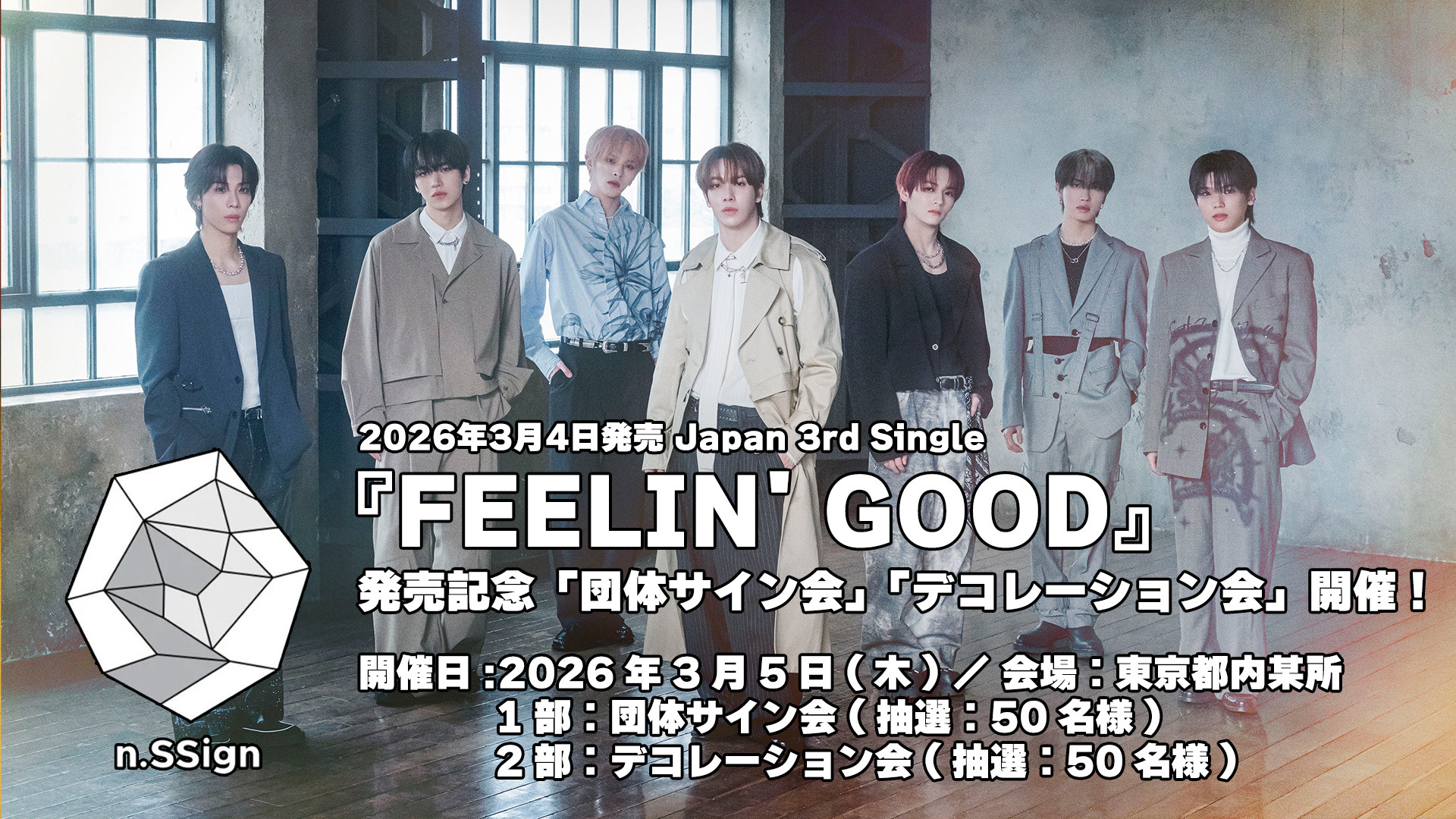 n.SSign Japan 3rd Single 「FEELIN' GOOD」のリリースを記念して、「『FEELIN' GOOD』団体サイン会」、「『FEELIN' GOOD』デコレーション会」の開催が決定いたしました!