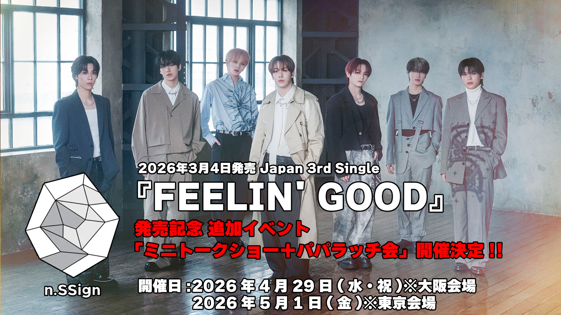 n.SSign Japan 3rd Single 『FEELIN’ GOOD』発売記念オフライン追加イベント「ミニトークショー+パパラッチ会」開催決定!前日・当日抽選販売決定!